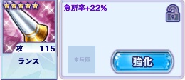 | ☆ランス 攻撃力16 追加効果は下記から1つ クリティカル率+8% 急所率+8% 敏捷性+3 |